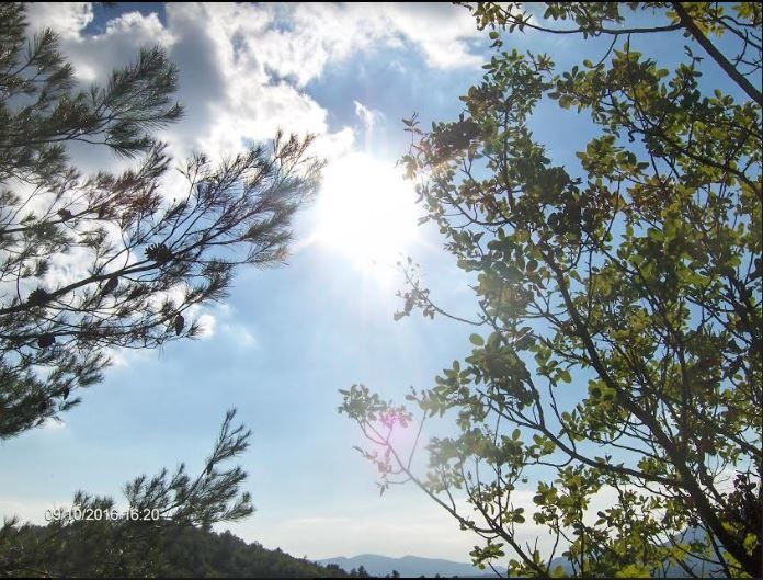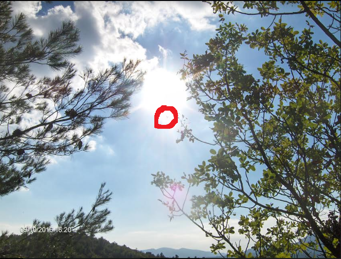 Ci-après, ce même jour du 09 octobre 2016, même secteur de Roquevaire, mais à 16h20, Catherine a photographié cet ovni triangle dans la lumière du soleil. Le même que celui de 16h47, ou un autre? :